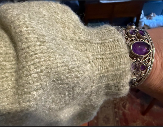 It features an oversized, slouchy silhouette with dropped shoulders and lantern sleeves — relaxed, cozy, and effortlessly stylish.